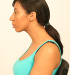 This posture is common in individuals that sit at a desk for their entire days’ work. The effort of looking at a computer screen often results in people developing overly tight muscles at the front of the neck and relatively weak muscles at the upper back and neck. This type of postural abnormality is easily corrected with stretching and strengthening exercises to correct the muscular imbalance that has developed.
